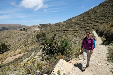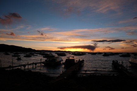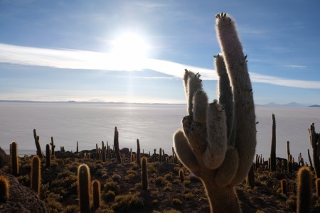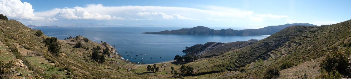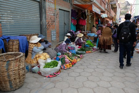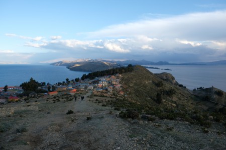 Visitiamo il lago Titicaca dapprima dal lato peruviano, vicino a Puno. Qui alcune persone si sono ingegnate con terriccio e giunchi a costruire le isole galleggianti sulle quali vivono. Passata la frontiera con la Bolivia arriviamo a Copacabana, da dove prendiamo una barca fino all’Isla del Sol. Al momento, a causa di un conflitto interno, è possibile visitarne solamente la parte sud, come ci spiega il simpaticissimo K’hana, il guardiano del passaggio verso il nord. L’isola è meravigliosa e ci concediamo due giorni di puro relax.