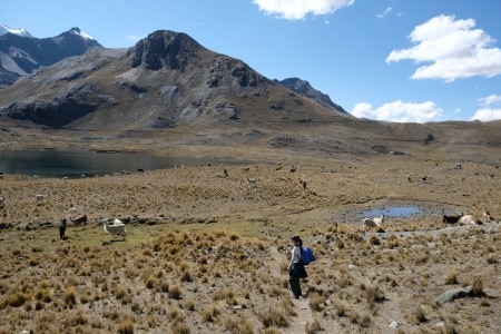 Con una passeggiata di 50 km esploriamo una piccola parte della Cordillera Real, salendo sul Pico Austria e passando accanto al Condoriri e al Huayna Potosi. Ci accolgono distese interminabili, laghi e montagne maestose, tra le quali si snodano valli in cui per due giorni non incontriamo nessuno, eccezion fatta per una manciata di curiosi lama.